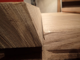 Once it was fast, I trimmed it to rough shape with a chisel and planed a chamfer on the leather and wood using a block plane. I was surprised that the leather planed just fine!