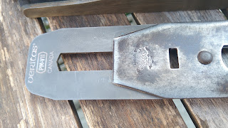 This plane is in the condition in which I recieved it. I have no idea if it works well or not, but there's no reason it shouldn't. It has a heavy blade and seems to have been used very little. Unfortunately I don't know enough about this plane to post a price, so make a fair offer and it's yours.Very Old Stanley Blade and Chipbreaker for a Transitional Plane - 15 Euros